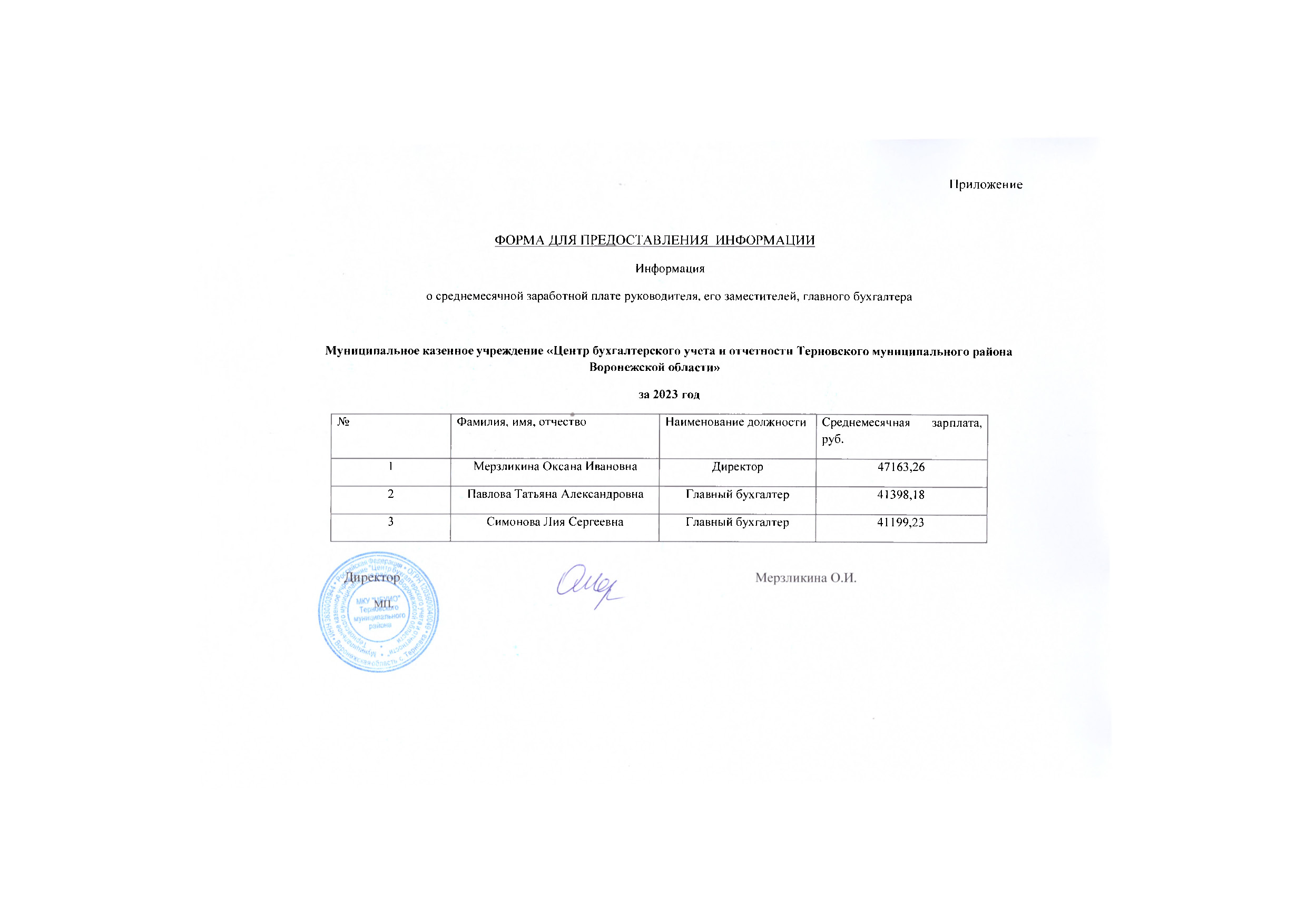 - Информация о среднемесячной заработной плате МКУ "Центр бухгалтерского учета и отчетности Терновского муниципального района Воронежской области" за 2023 год